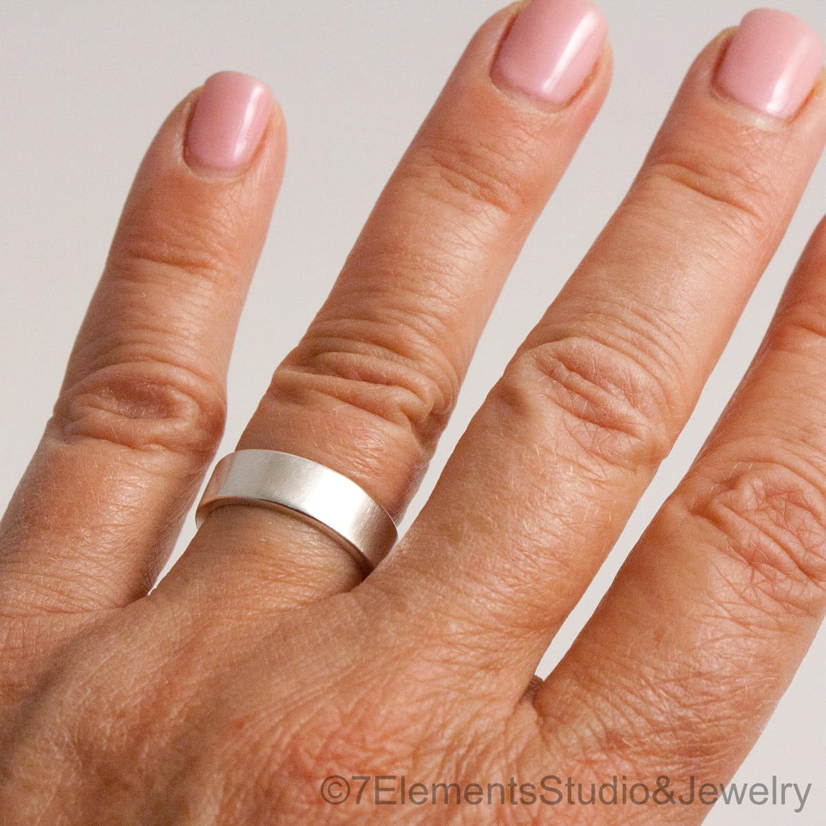 Sleek, strong, and forever in style. This ring features a smooth satin finish that catches light with quiet elegance. Its clean, modern profile makes it a timeless choice perfect as a wedding band, everyday ring, or stacking piece. Handcrafted with rolled edges for comfort and durability, this ring is understated sophistication at its finest.