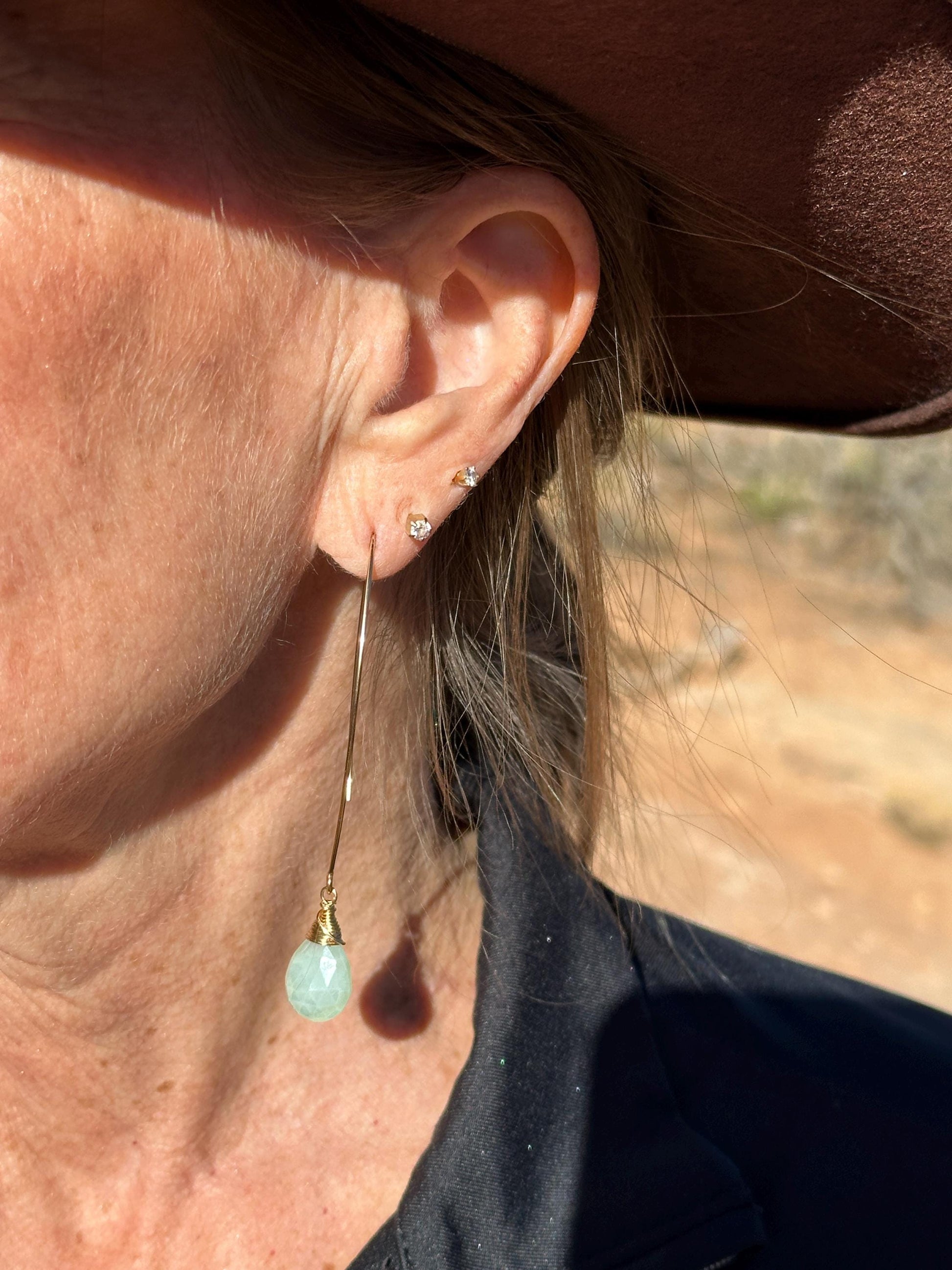 Big Bend 14K Gold Fill Earrings with Faceted Green Chalcedony Gemstones