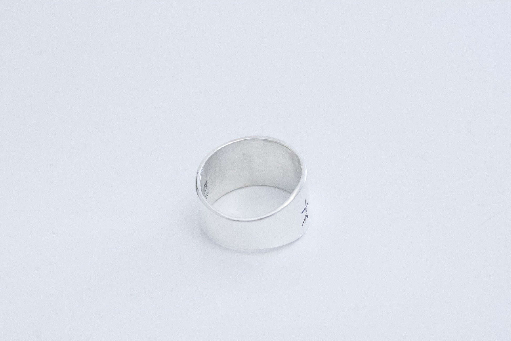 Let your spirit roam with the Compass Rose Ring, hand-forged in sterling silver as a symbol of direction and discovery. Featuring a finely detailed compass rose stamped into the face of a wide mirror finish band, this ring is perfect for travelers, wanderers, and those guided by inner purpose. Whether you're navigating new landscapes or life's next chapter, let this ring be your steady North Star.
