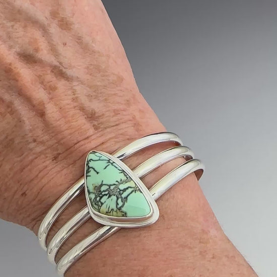 3-wire sterling cuff bracelet with Nautilus Variscite (from Nevada)