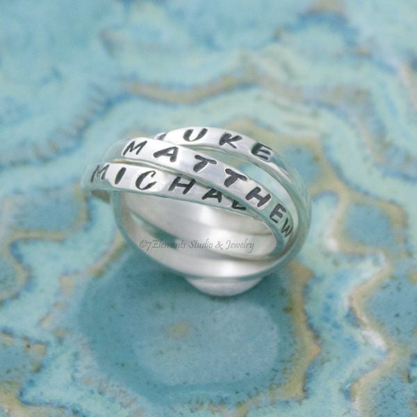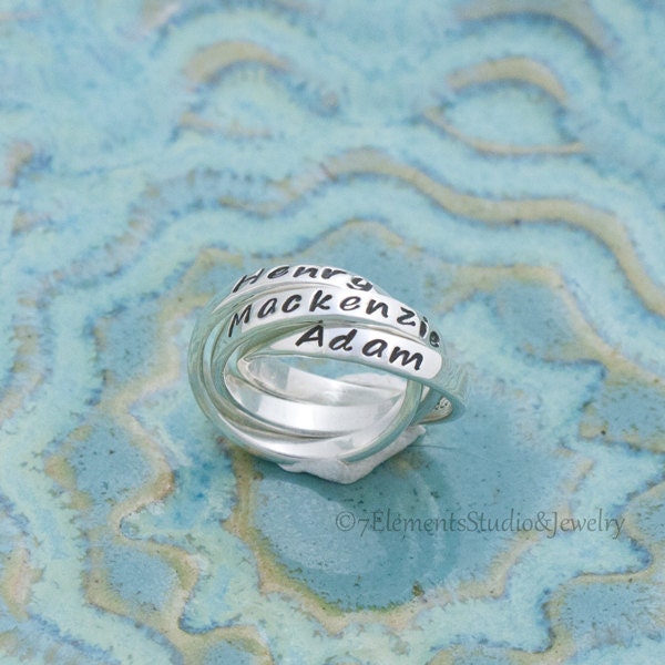 Triple Mother's Ring, Interlocking Name Rings, Personalized Rolling Rings
