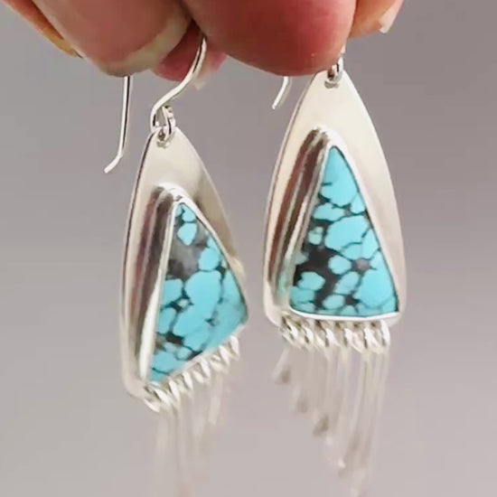 #8 Turquoise Earrings with Argentium Silver Paddle Fringe